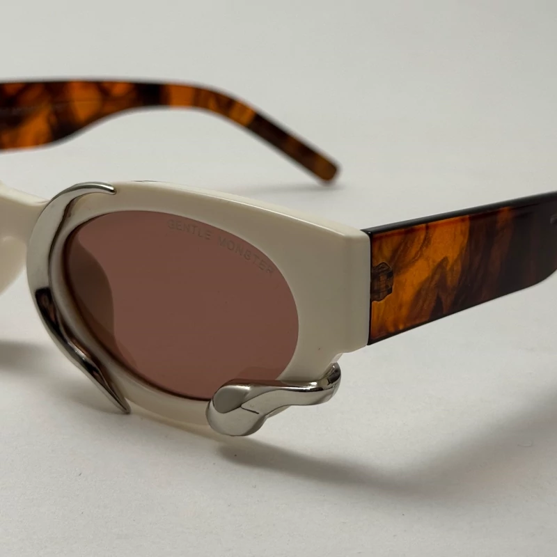 اگر دنبال یک عینک خاص، کمیاب و کاملاً متفاوت هستی، این مدل از برند Gentle Monster دقیقاً همون چیزیه که دنبالش بودی. طراحی این عینک ترکیبی از فرم بیضی کلاسیک با المانهای مدرن و اکسسوریهای فلزی غیرمتقارن هست که جلوهای سوررئال، هنری و آیندهنگر به چهره میده.