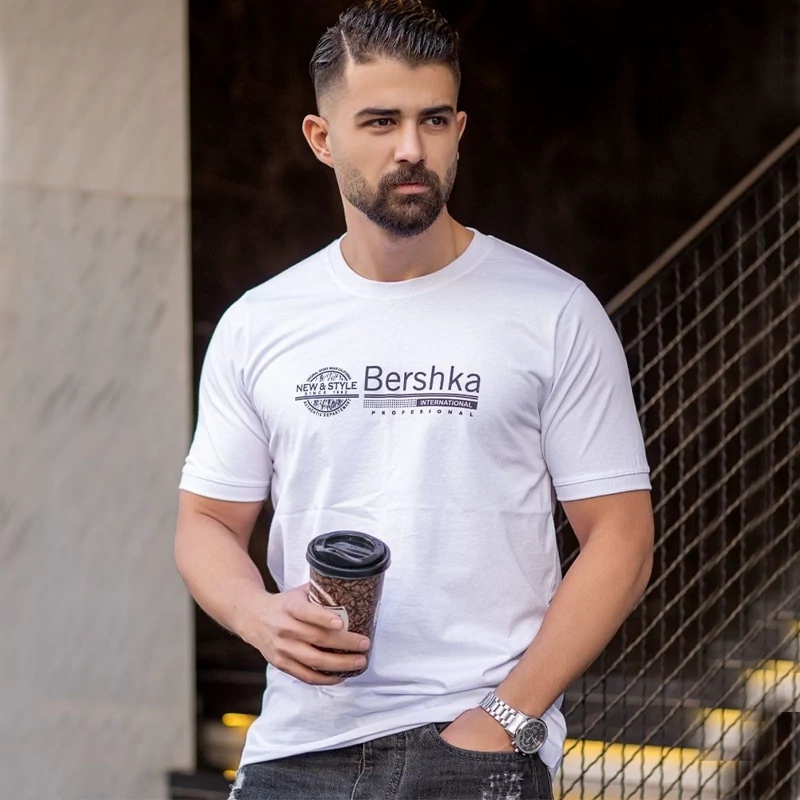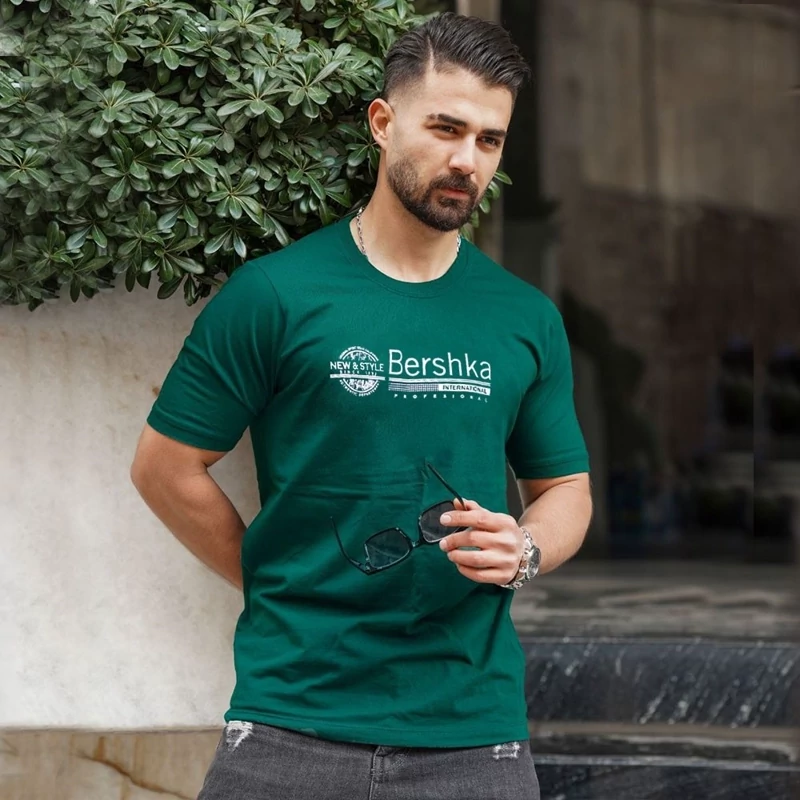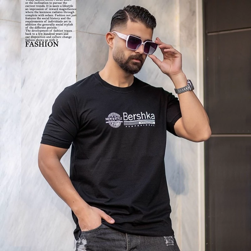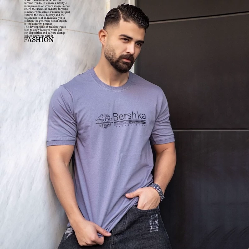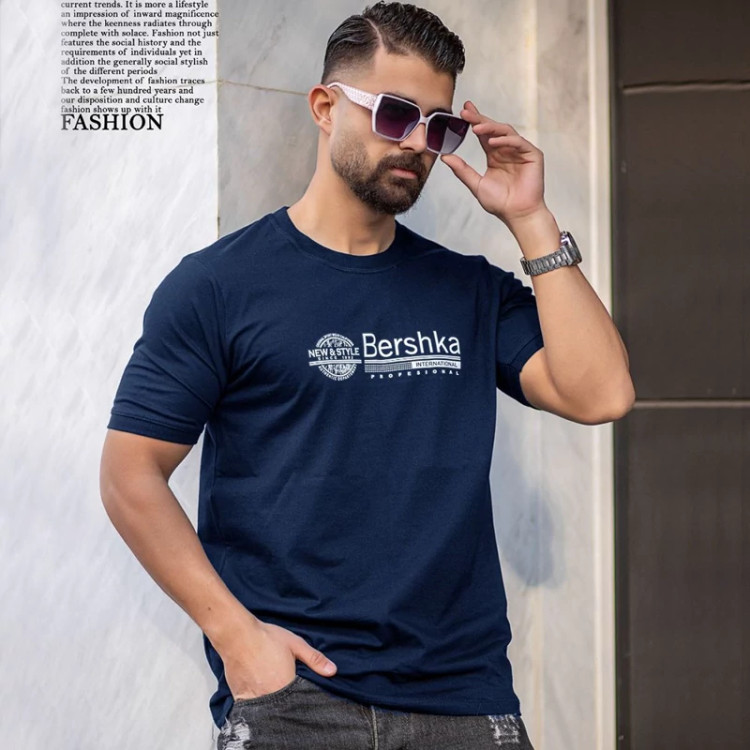 تیشرت مردانه برشکا رنگ سرمه ای جنس نخ پنبه 28 سایزبندی L تا 3xL