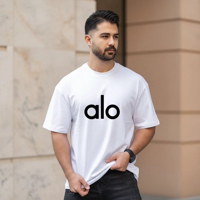 تیشرت مردانه نخ پنبه طرح ALO با طراحی مدرن و کیفیت بالا، مناسب استایل روزمره و اسپرت. پارچه نرم و تنفسپذیر، راحتی عالی و دوام مناسب؛ انتخابی شیک برای استفاده روزانه.
