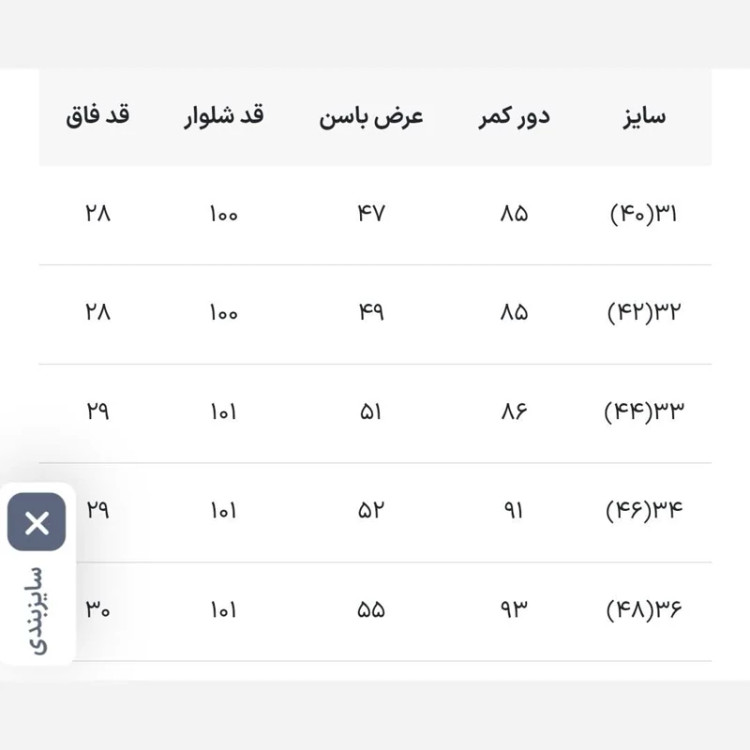 سایزبندی 31 تا 36خارجی(40 تا 48 ایرانی)