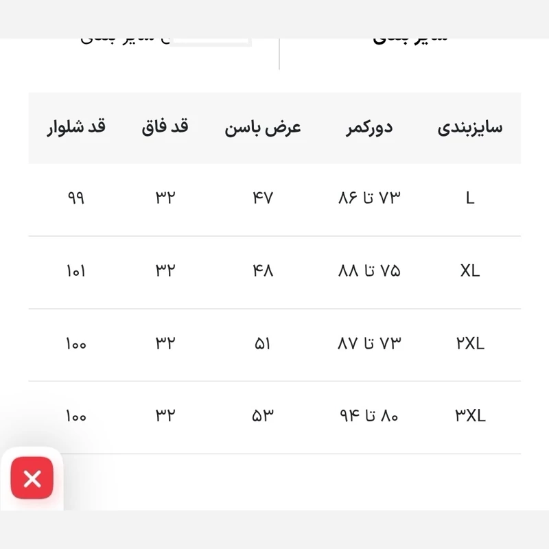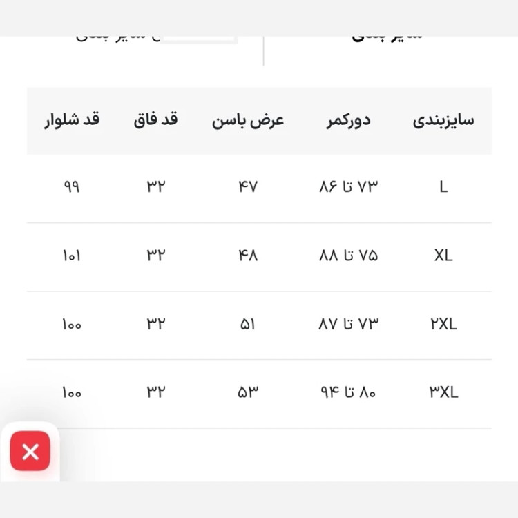 جدول سایز داخل تصاویر زدیم