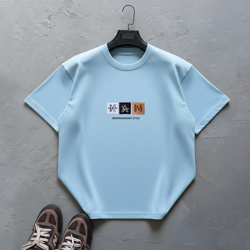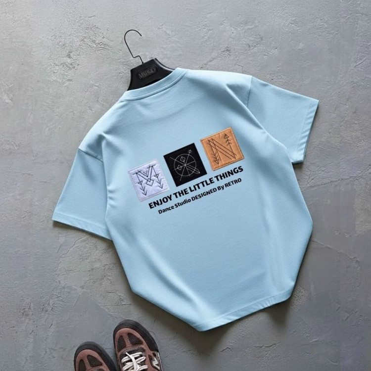 تیشرت دونخ پنبه سه تابلورومی رنگ آبی یخی سایز L تا 2xl