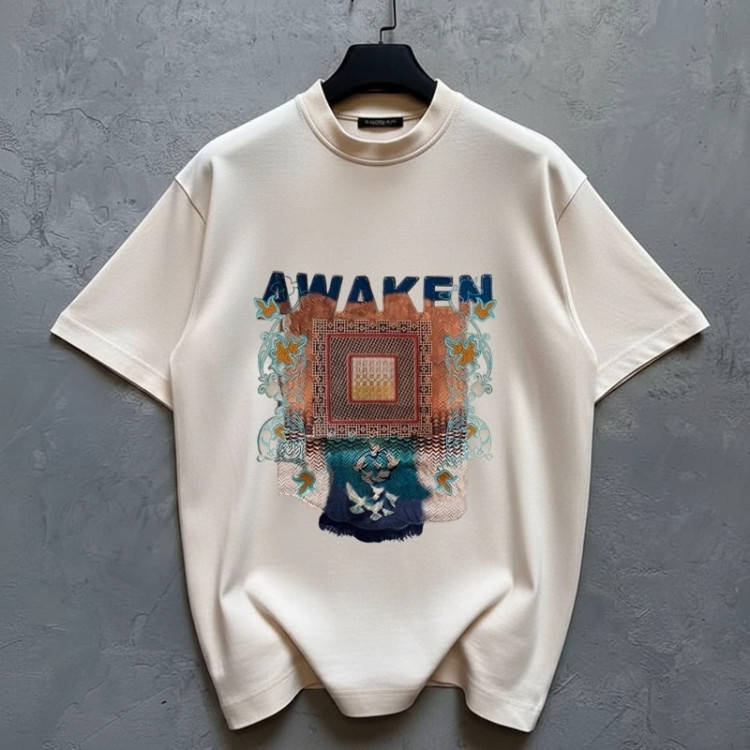 انواع تیشرت دونخ پنبه طرح اوکین Awaken رنگ سفید با چاپ خاص و مدرن، پارچه نرم و تنفسپذیر مناسب استایل روزمره و کژوال. کیفیت بالا، تنخور راحت و طراحی متفاوت.