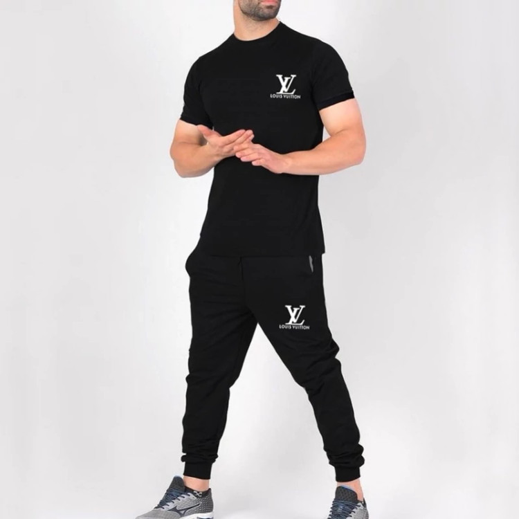 ست تیشرت و شلوار مردانه LV رنگ مشکی جنس پنبه گلکسی سایز L تا 3xl