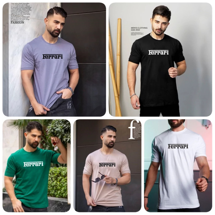 تیشرت مردانه طرح Ferrari رنگ طوسی سایز L تا 3xl