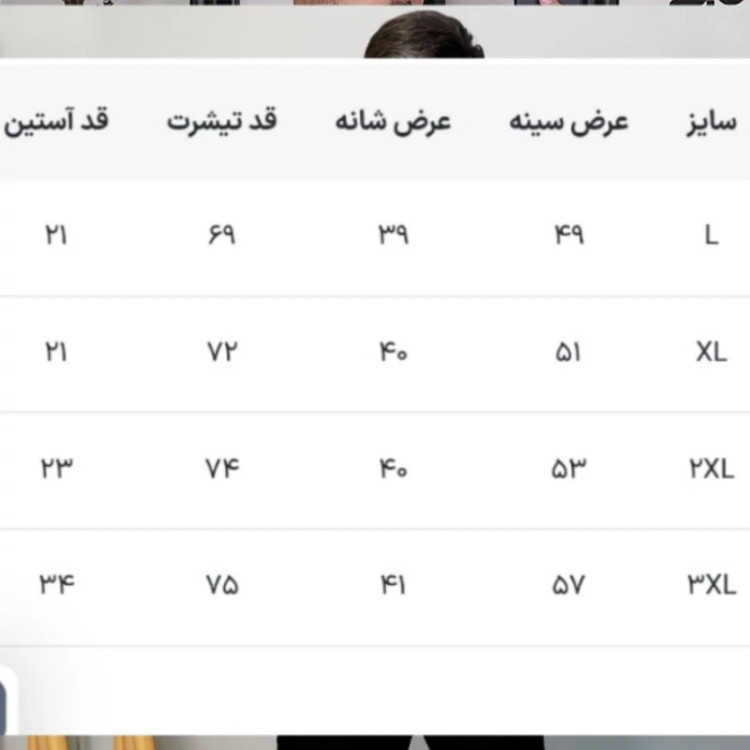 جدول و اندازه های لباس در توضیحات قرار گرفته است