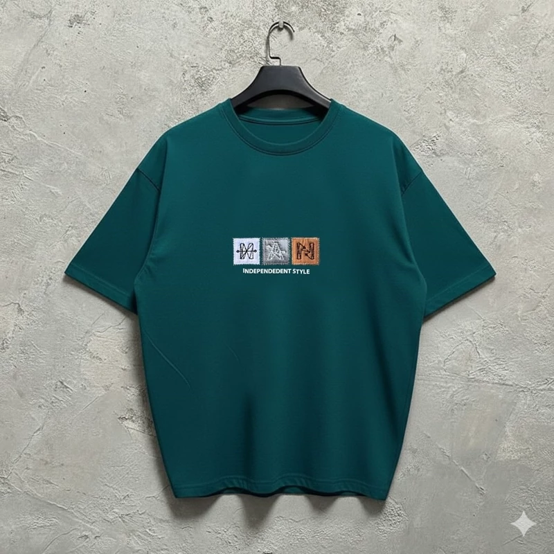 تیشرت دونخ پنبه سه تابلورومی رنگ سبز سایز L تا 2xl