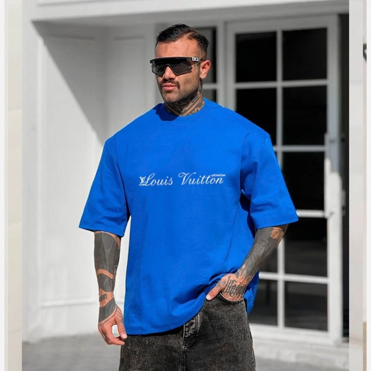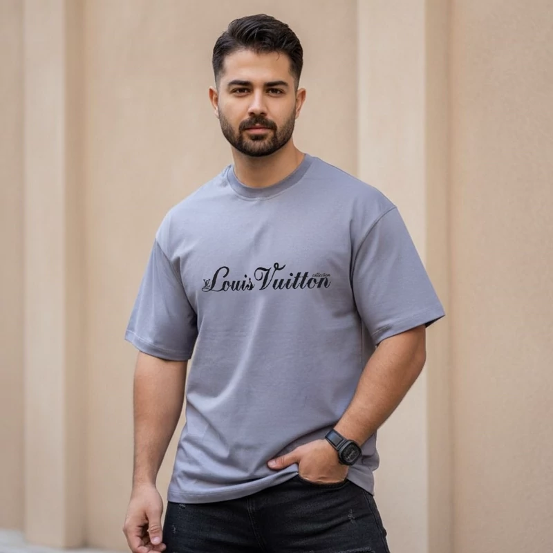 تیشرت مردانه و زنانه قواره دار رنگ سبز طرح لویسویتون سایز L تا 2xl