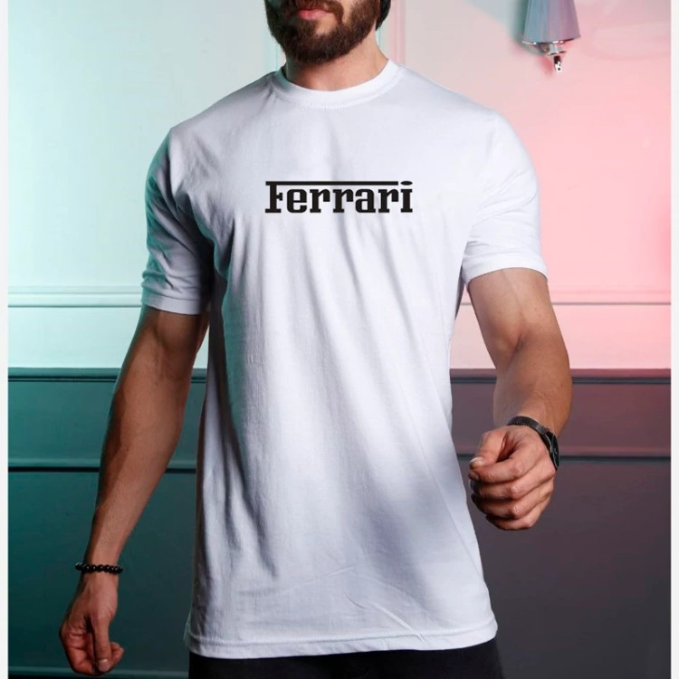 تیشرت مردانه و زنانه طرح فراری Ferrari رنگ سفید سایز L تا 3xl