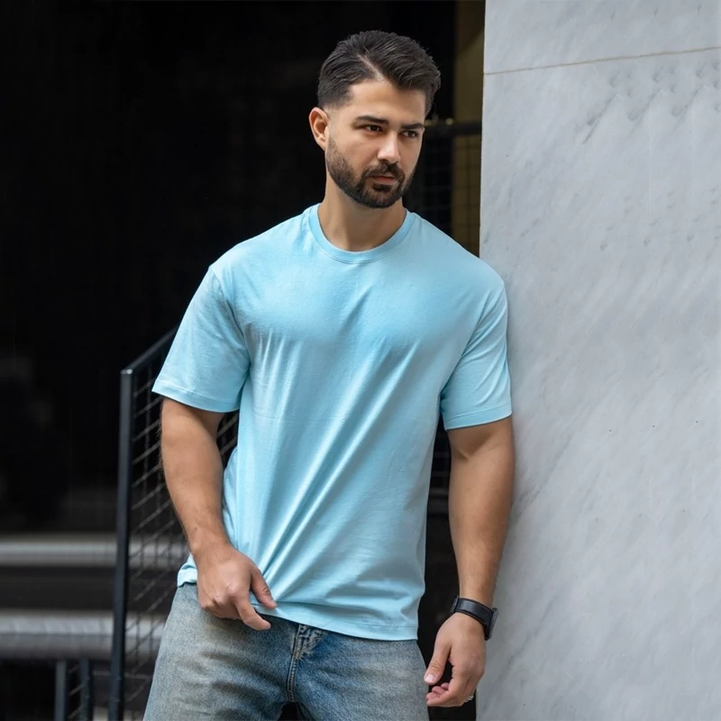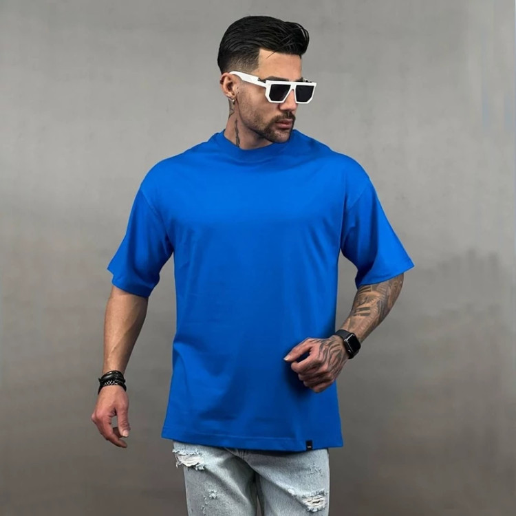 تیشرت بیسیک ساده قواره دار باکسی رنگ آبی سایز L تا 2xl