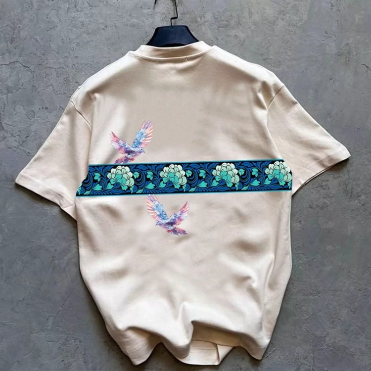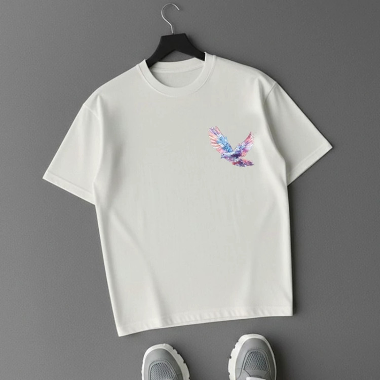 طرح کبوتر بهعنوان نماد صلح و آزادی، جلوهای هنری و متفاوت به لباس داده و رنگ آبی یخی آن باعث ایجاد استایلی خنک، مدرن و چشمنواز میشود. این مدل بهراحتی با انواع شلوار جین، اسلش یا استایل خیابانی ست میشود.