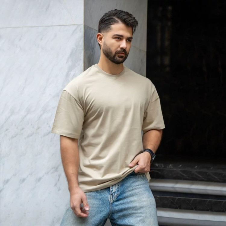 تیشرت مردانه و زنانه بیسیک ساده قواره دار باکسی رنگ کرمی سایز L تا 2xl