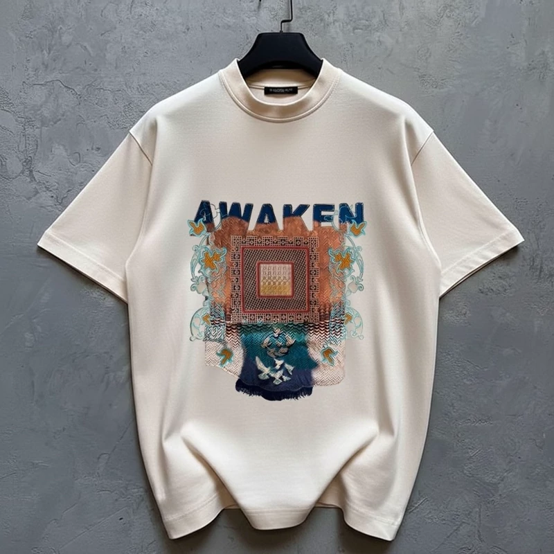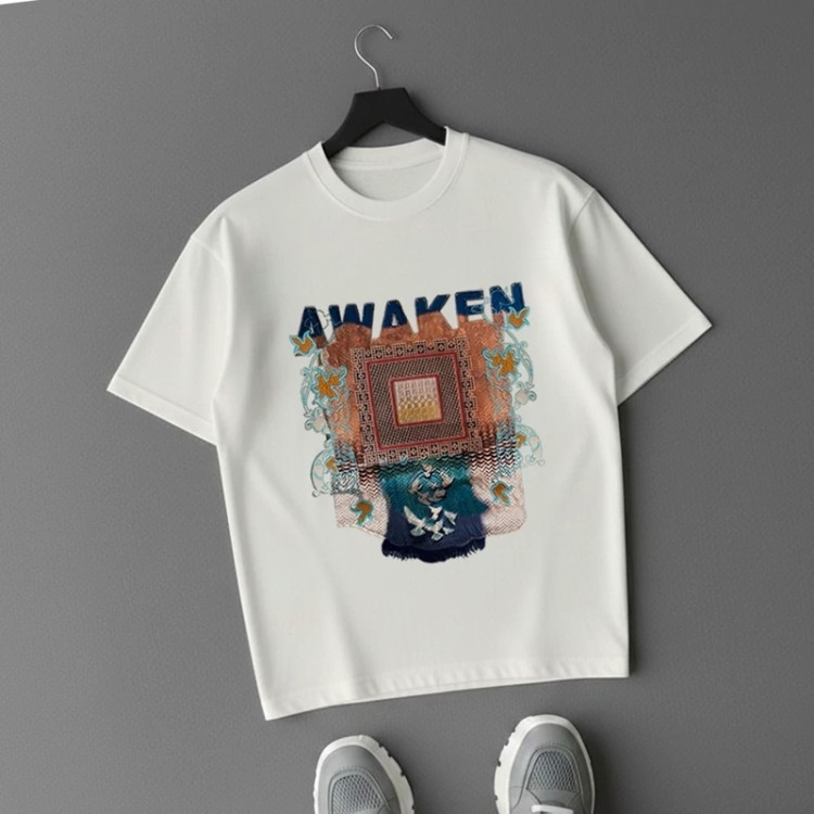 انواع تیشرت دونخ پنبه طرح اوکین Awaken رنگ آبی یخی با چاپ خاص و مدرن، پارچه نرم و تنفسپذیر مناسب استایل روزمره و کژوال. کیفیت بالا، تنخور راحت و طراحی متفاوت.