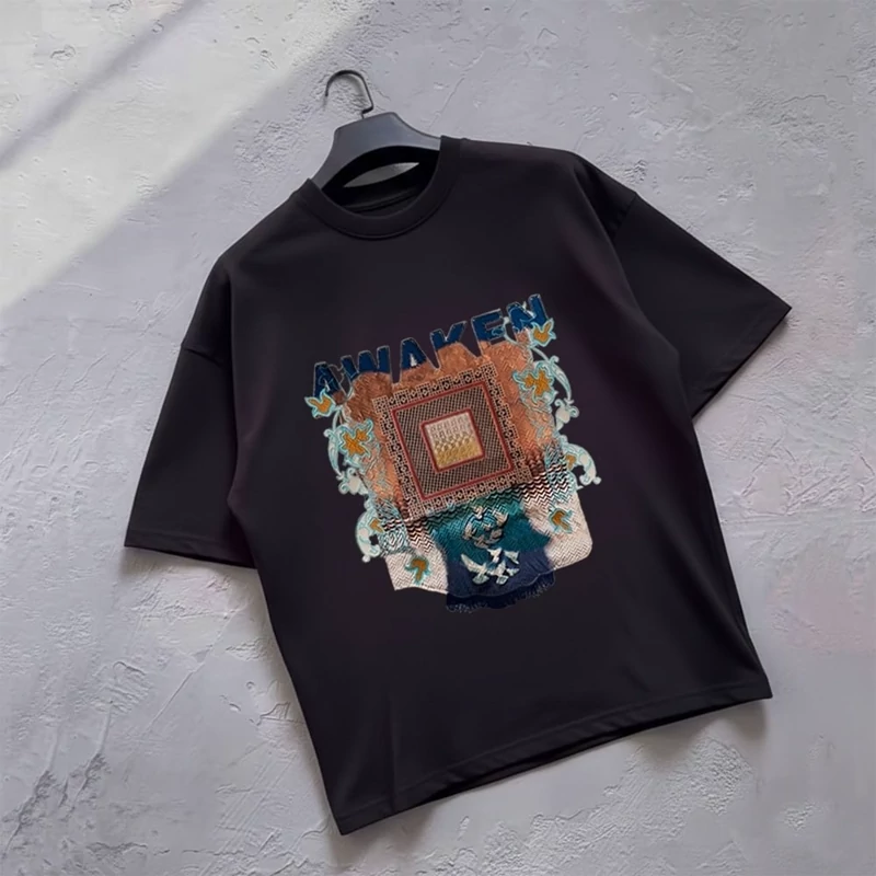 انواع تیشرت دونخ پنبه طرح اوکین Awaken رنگ سفید با چاپ خاص و مدرن، پارچه نرم و تنفسپذیر مناسب استایل روزمره و کژوال. کیفیت بالا، تنخور راحت و طراحی متفاوت.
