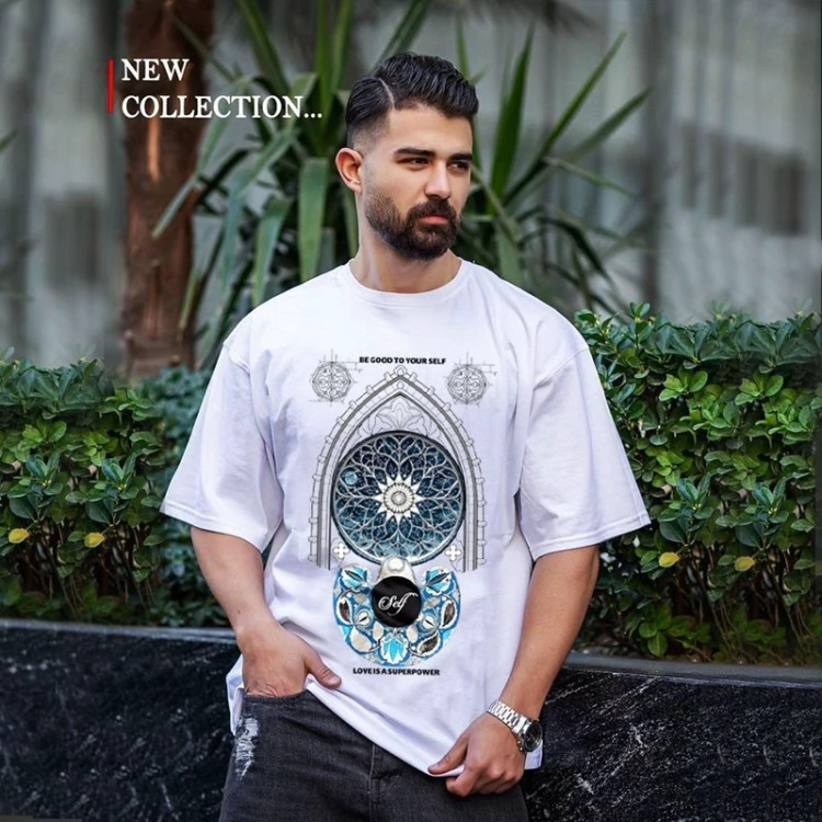 تیشرت مردانه قواره دار چاپ سنتی آریا رنگ کرمی سایز L تا 2xl