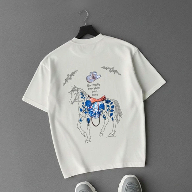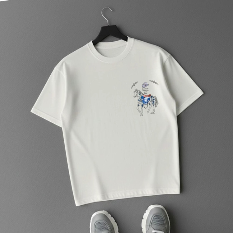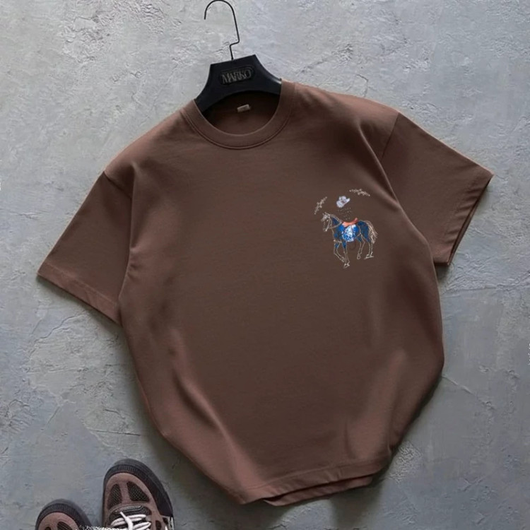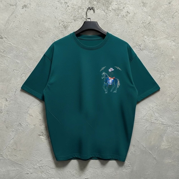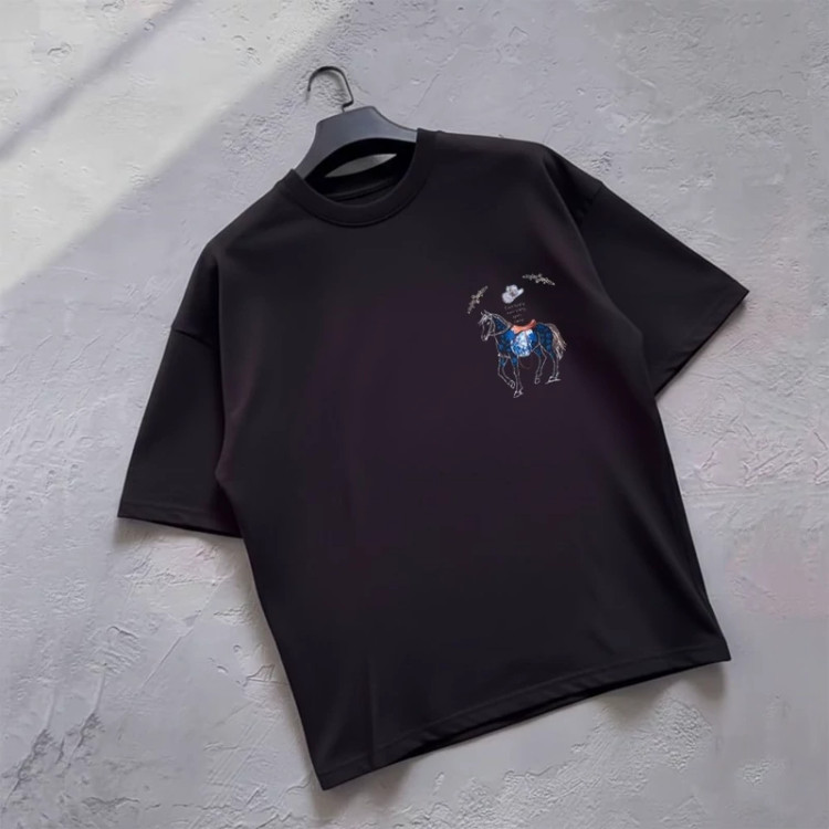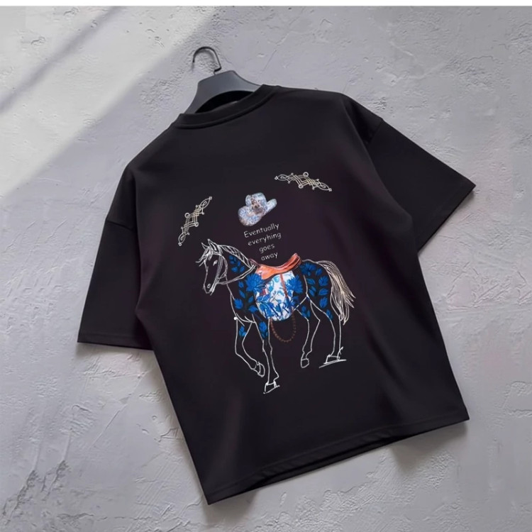 تیشرت باکسی دونخ پنبه طرح زین اسب رنگ آبی یخی سایز L تا 2xl