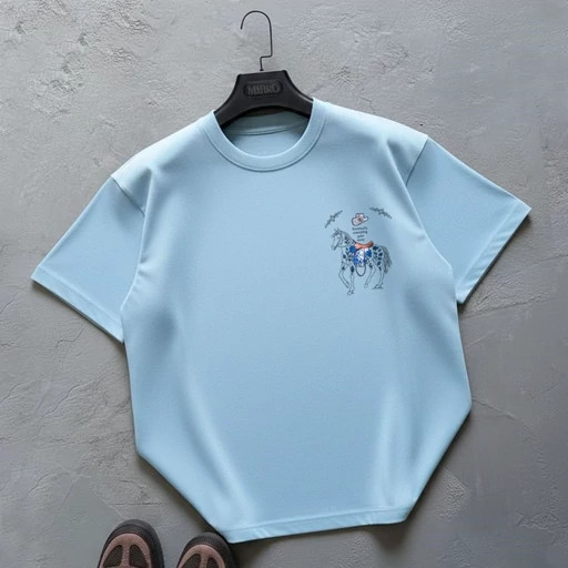 تیشرت مردانه و زنانه باکسی دونخ پنبه طرح زین اسب رنگ آبی یخی سایز L تا 2xl